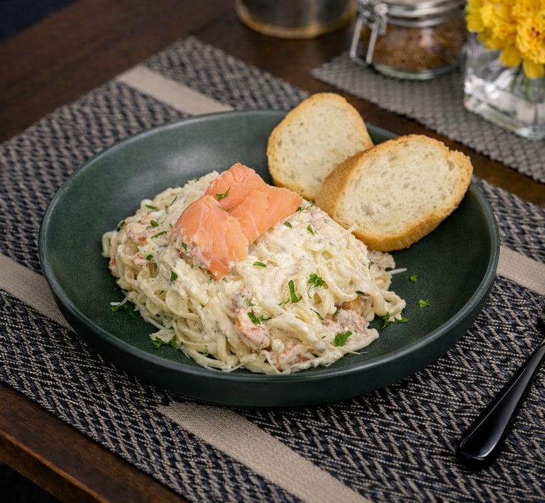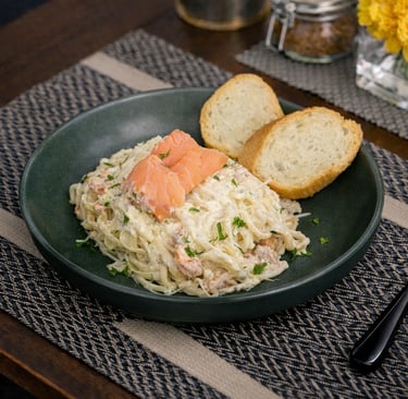 Smoked salmon, cream cheese, avocado, roasted beetroot, French fries, toasted sourdough bread, mixed salad, tomato Sauce